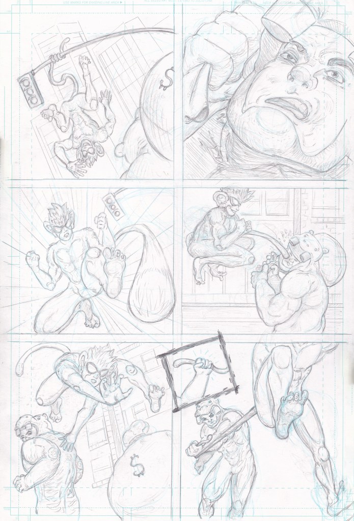 Simian-Man sample pages Mike GreearJune 9, 2021April 23, 2025Pencil samples, Samples, Simian-Man Post navigation PreviousNext Three pencilled interior pages and one inked cover, conceived as a portfolio piece. Share this: Click to share on X (Opens in new window) X Click to share on Facebook (Opens in new window) Facebook Like Loading... Related